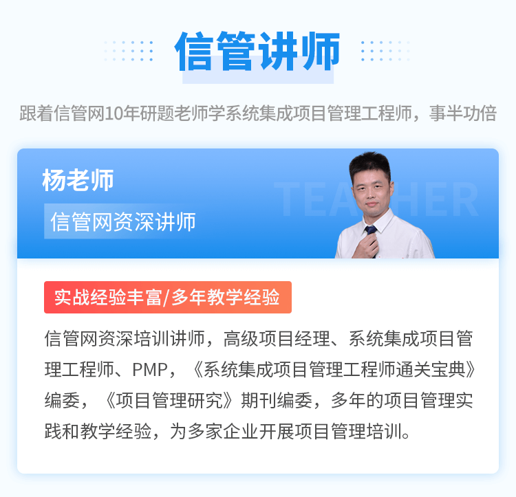 當(dāng)前位置:信管網(wǎng) >> 系統(tǒng)集成項(xiàng)目管理工程師視頻培訓(xùn)課程 >> 系統(tǒng)集成項(xiàng)目管理工程師自學(xué)班(第3版新課程)